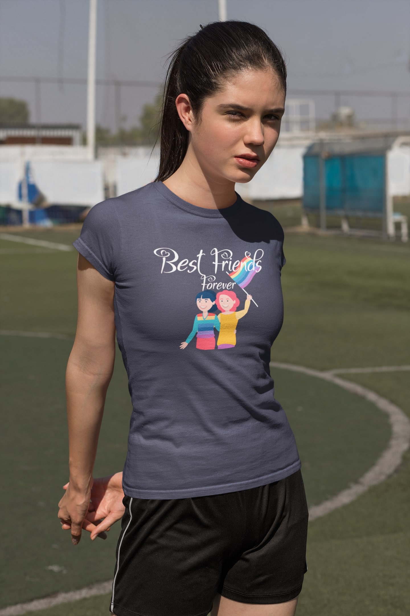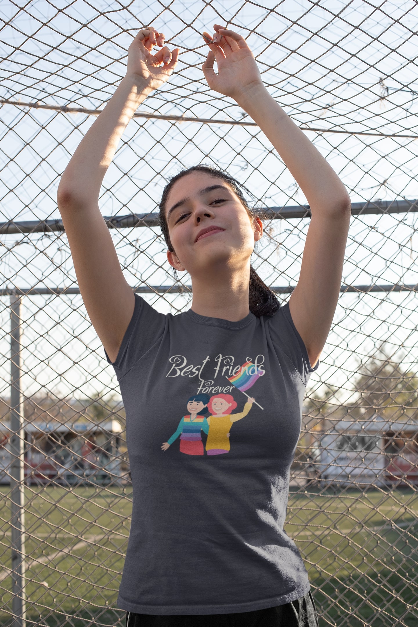 Friends stick together through tough times. A T-shirt to celebrate one of the most beautiful relationships we make in life. The T-shirt comes in 6 colors: white, ash, orange, navy, pink, red and available in sizes from S-XXXL. A beautiful gift idea for best friend from lgbtq.